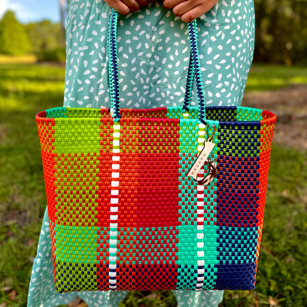 Handwoven by artisan families in Mexico, every Bagaro tote is as durable as it is beautiful. Made from 100% recycled plastic, our eco-friendly bags are lightweight, waterproof, and built to last.