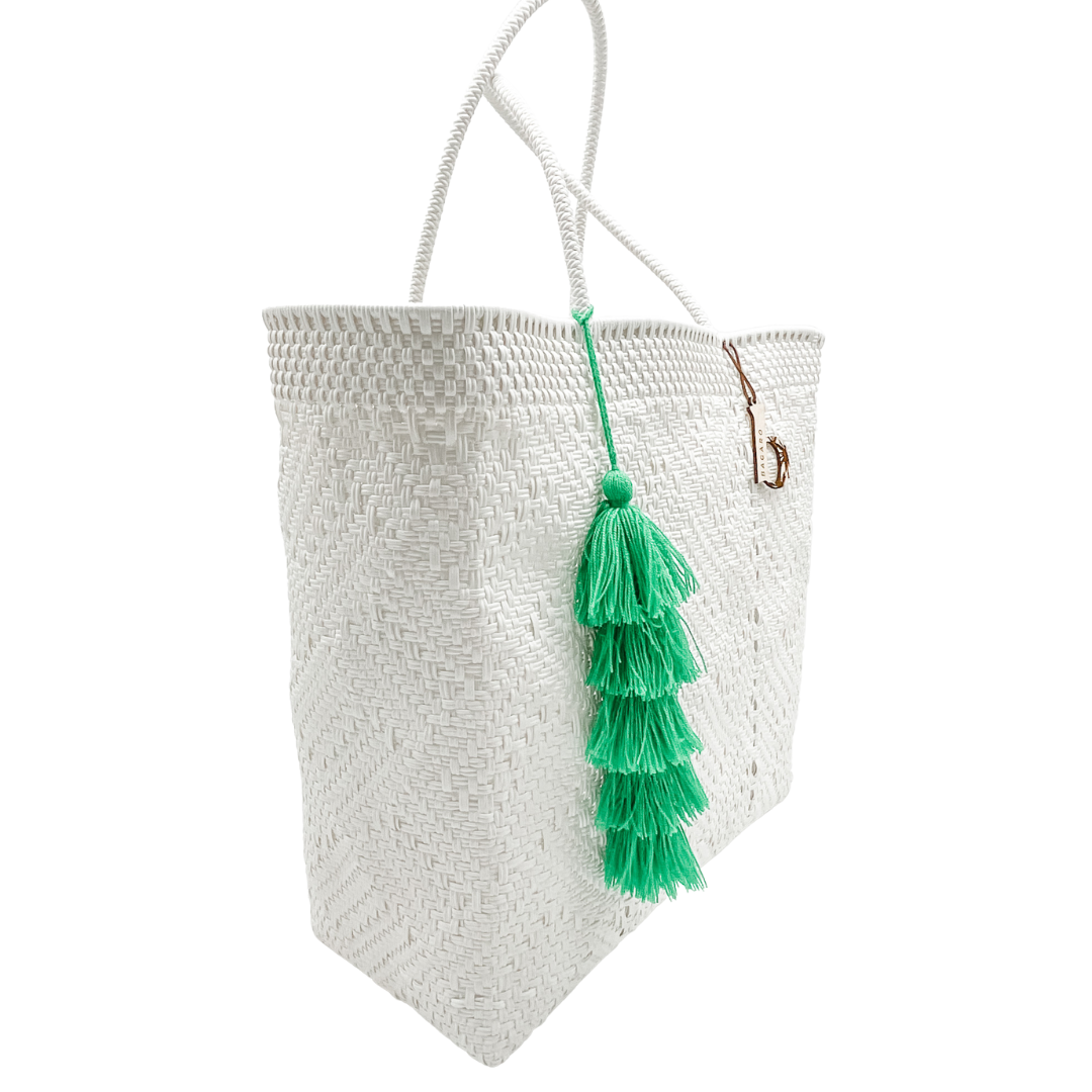 Handwoven by artisan families in Mexico, every Bagaro tote is as durable as it is beautiful. Made from 100% recycled plastic, our eco-friendly bags are lightweight, waterproof, and built to last.