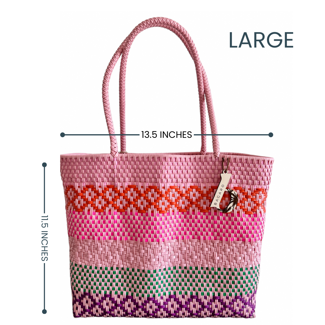 Handwoven by artisan families in Mexico, every Bagaro tote is as durable as it is beautiful. Made from 100% recycled plastic, our eco-friendly bags are lightweight, waterproof, and built to last.