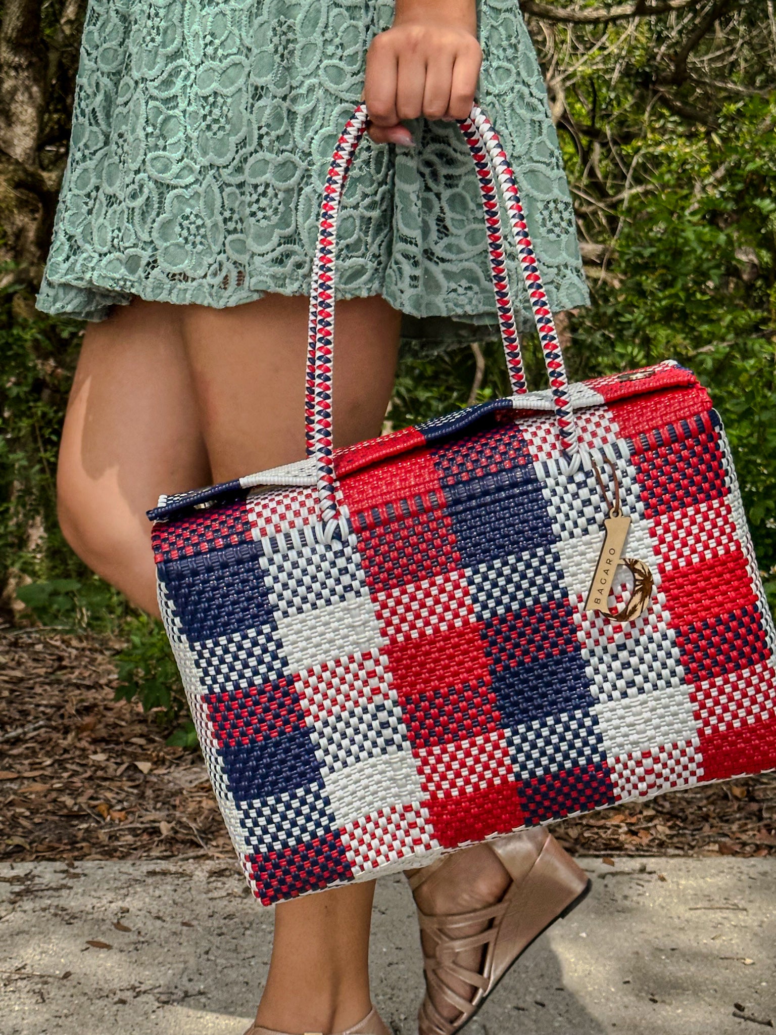 Handwoven by artisan families in Mexico, every Bagaro Box Tote combines traditional craftsmanship with modern structure. Made from 100% recycled plastic, these eco-friendly bags are durable, waterproof, and built to last.