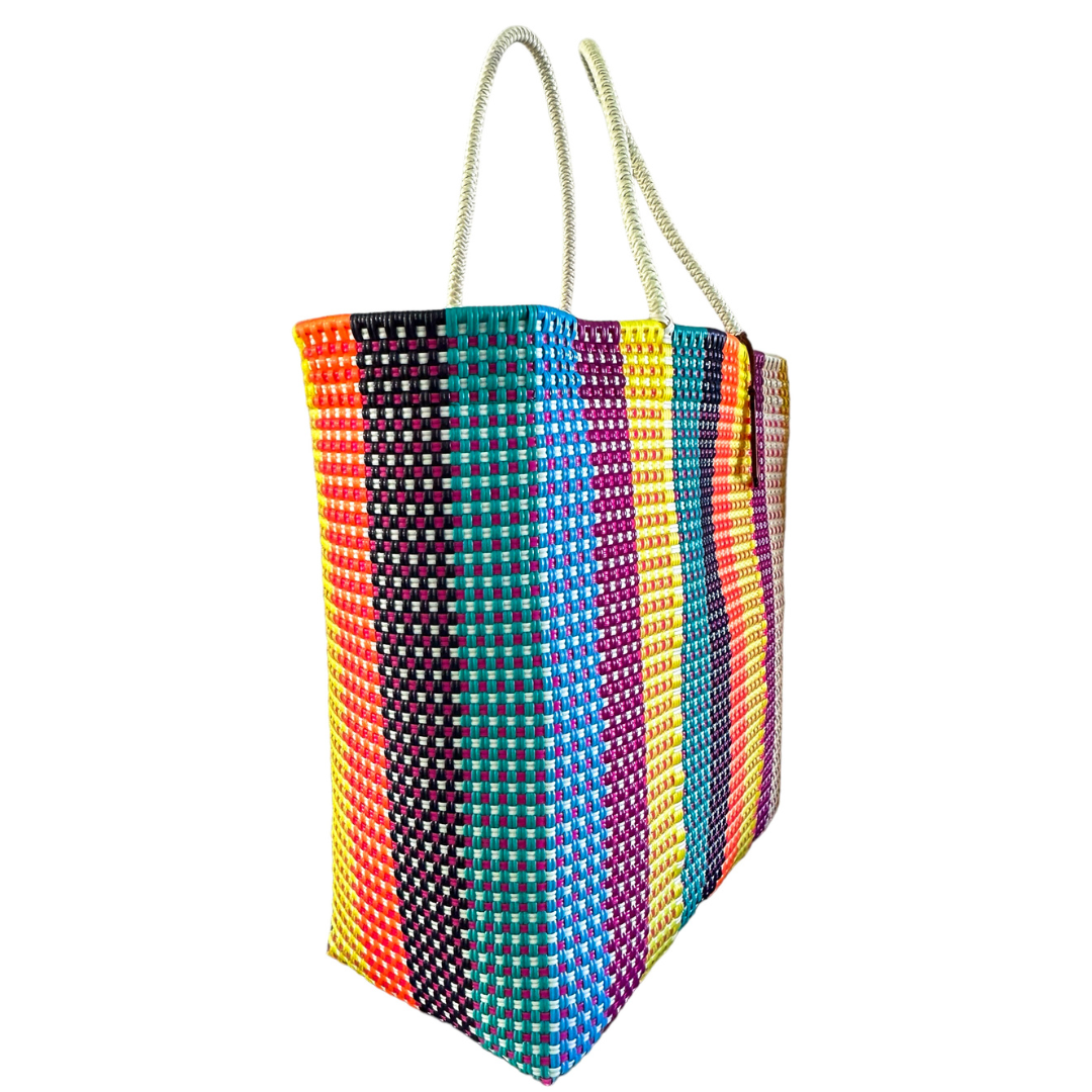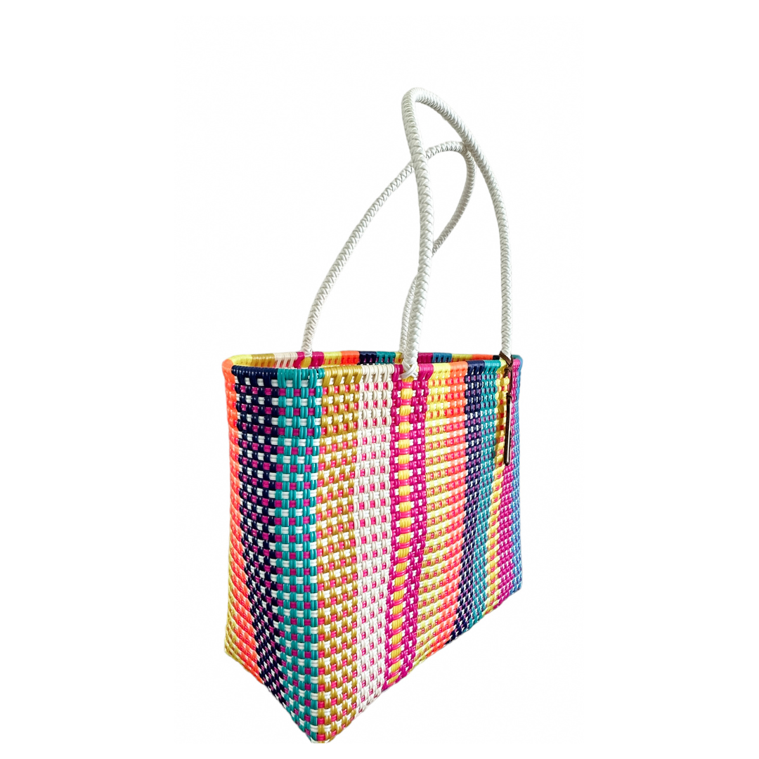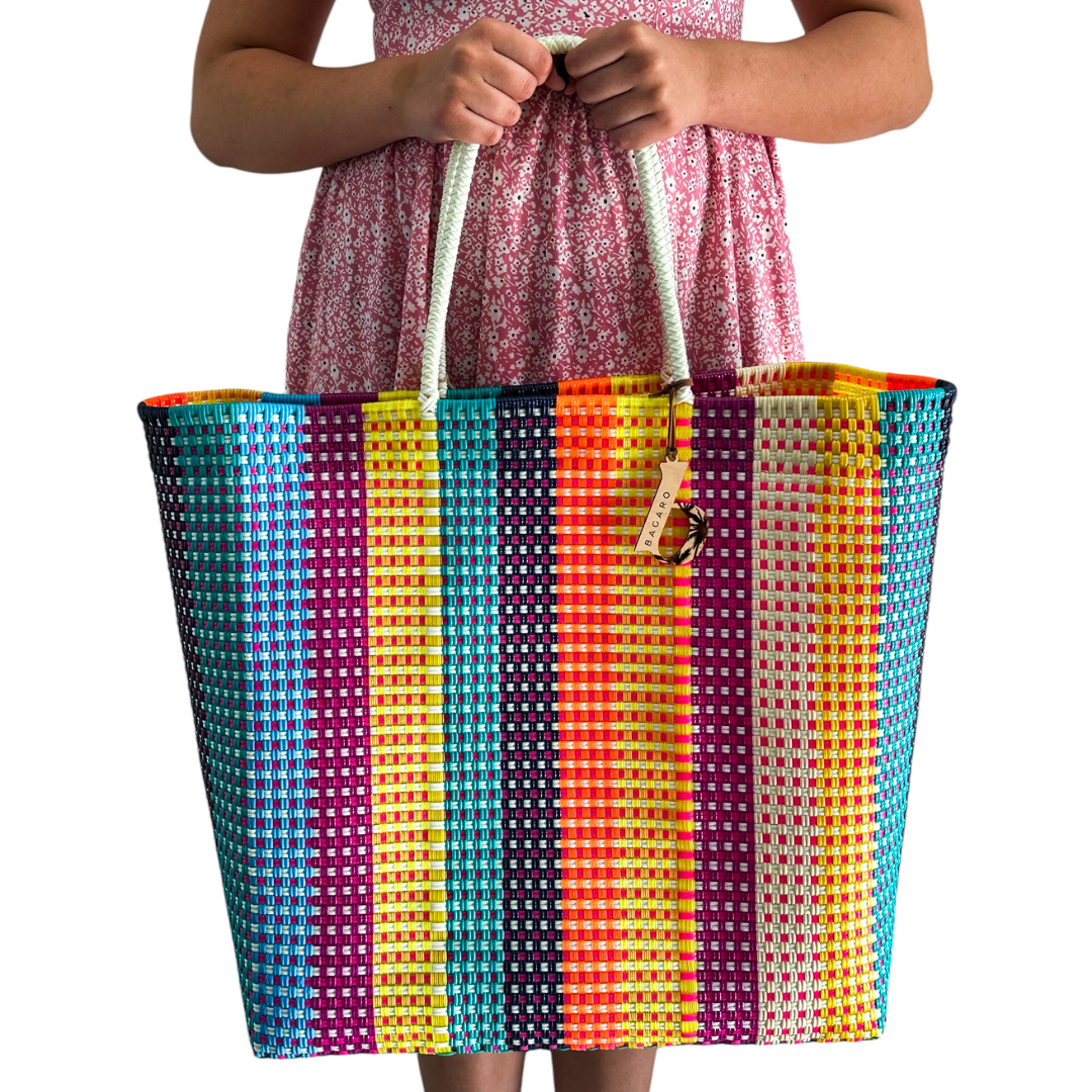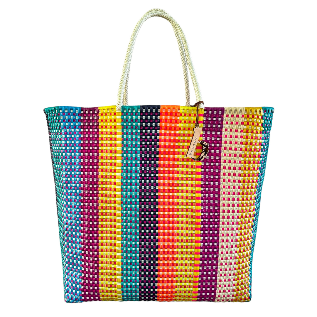Handwoven by artisan families in Mexico, every Bagaro tote is as durable as it is beautiful. Made from 100% recycled plastic, our eco-friendly bags are lightweight, waterproof, and built to last.