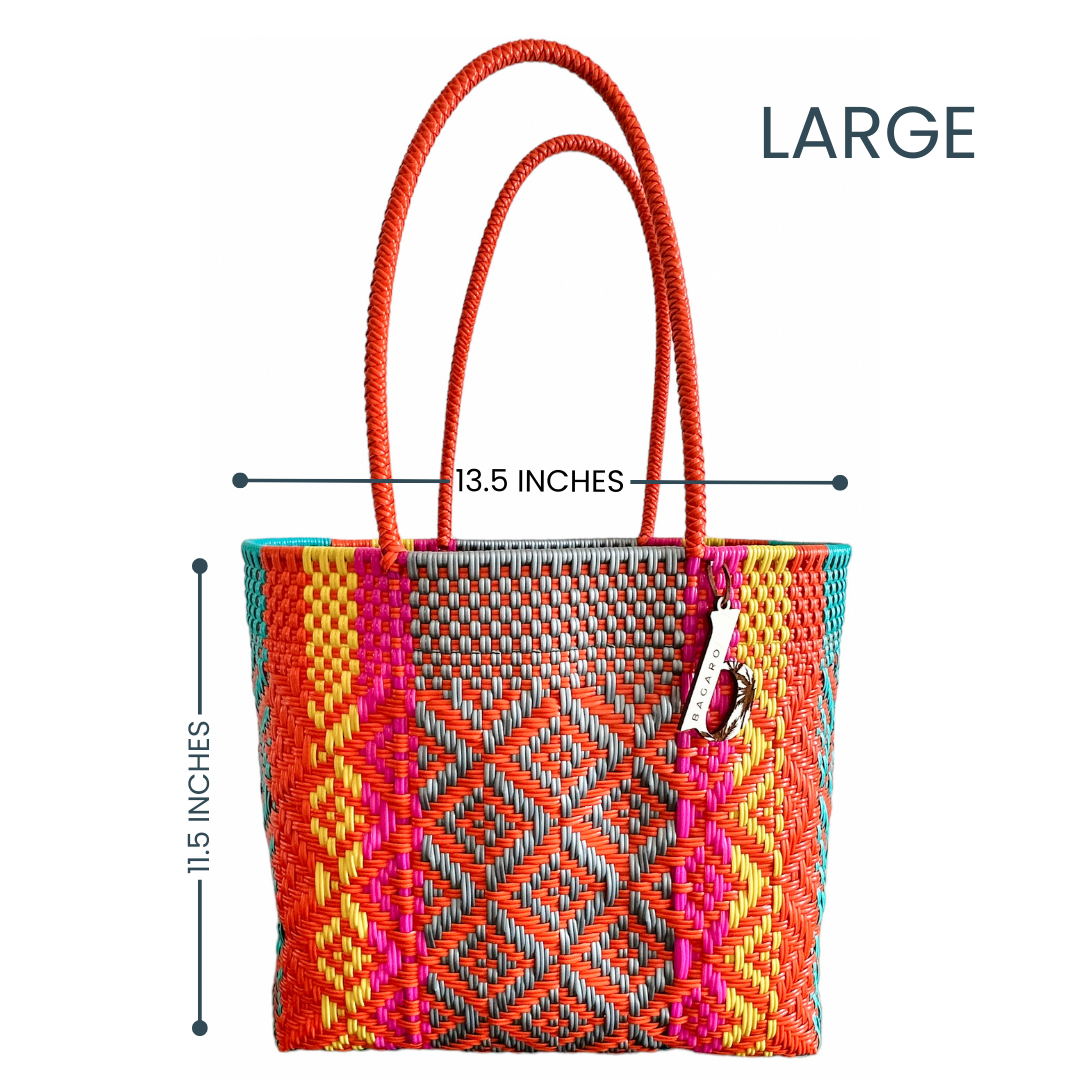 Handwoven by artisan families in Mexico, every Bagaro tote is as durable as it is beautiful. Made from 100% recycled plastic, our eco-friendly bags are lightweight, waterproof, and built to last.