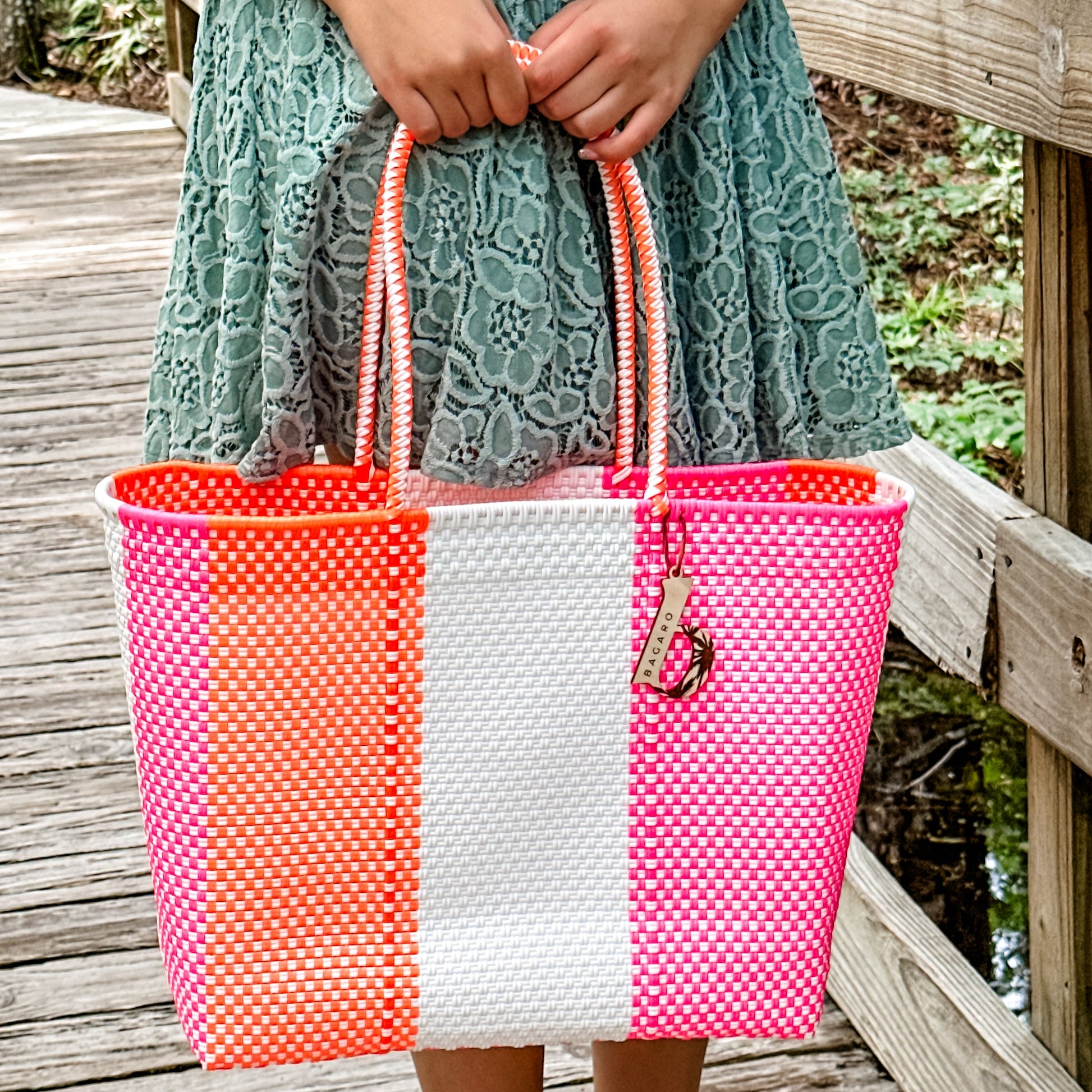 Handwoven by artisan families in Mexico, every Bagaro tote is as durable as it is beautiful. Made from 100% recycled plastic, our eco-friendly bags are lightweight, waterproof, and built to last.